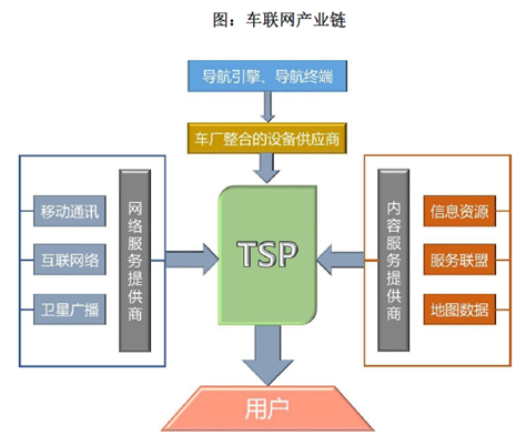 TSP ——Telematics Service Provider,車聯(lián)網(wǎng)服務運營商,在車聯(lián)網(wǎng)產(chǎn)業(yè)鏈居于核心地位。